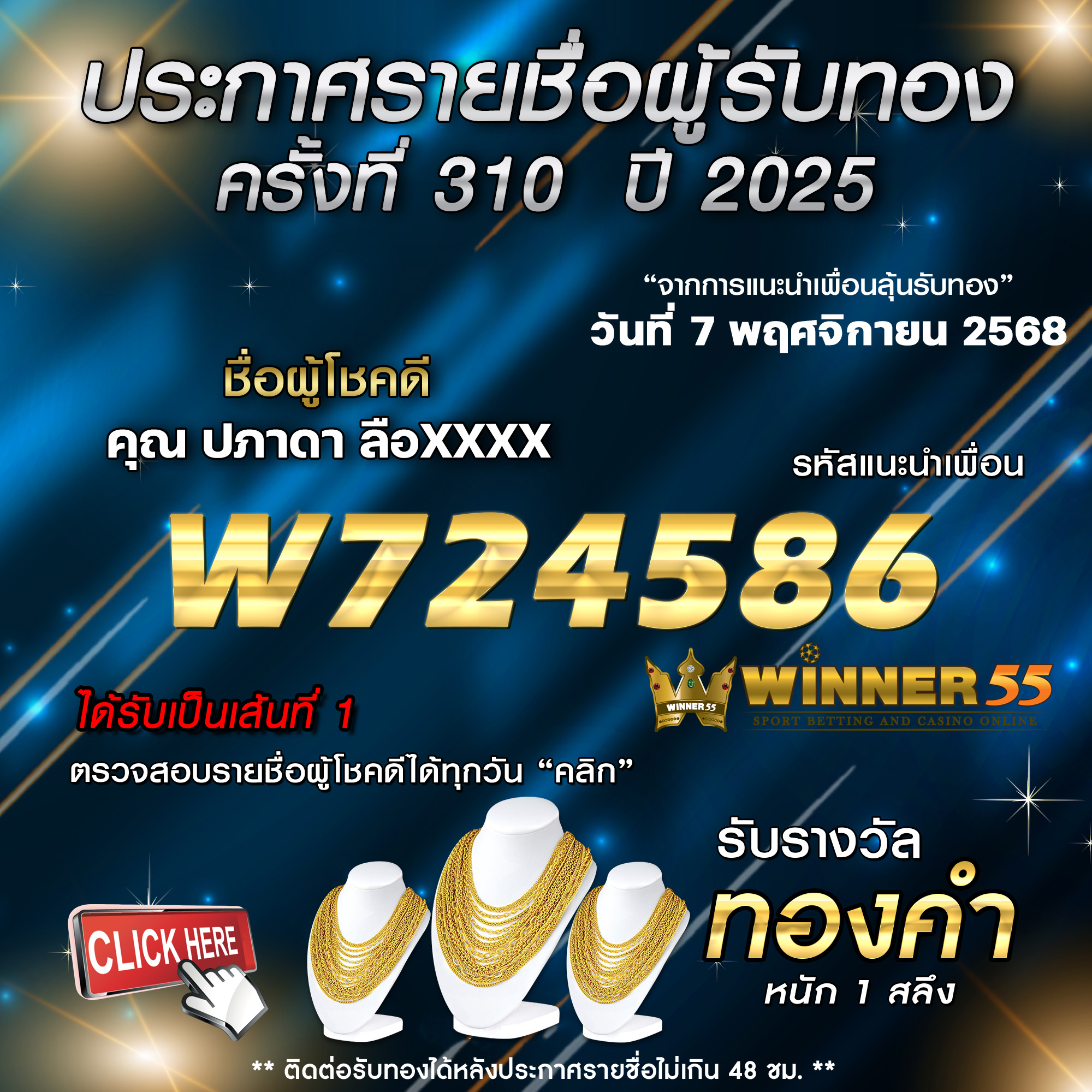 ประกาศรายชื่อผู้โชคดี ได้รับโบนัส กิจกรรมฝากเงินลุ้นโบัส "ต้อนรับฤดูกาล 2025 "