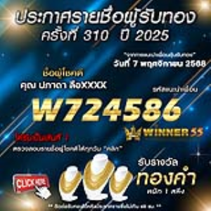 ประกาศรายชื่อผู้โชคดี ปภาดา ลือxxxx ได้รับทองคำหนัก 1 สลึง ประจำวันที่ 07 พฤศจิกายน 2568