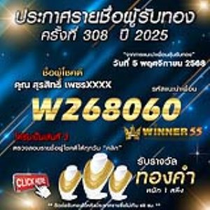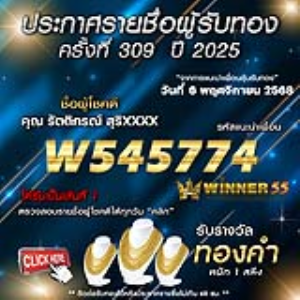 ประกาศรายชื่อผู้โชคดี รสรินทร์ โคตรxxxx ได้รับทองคำหนัก 1 สลึง ประจำวันที่ 02 พฤศจิกายน 2568