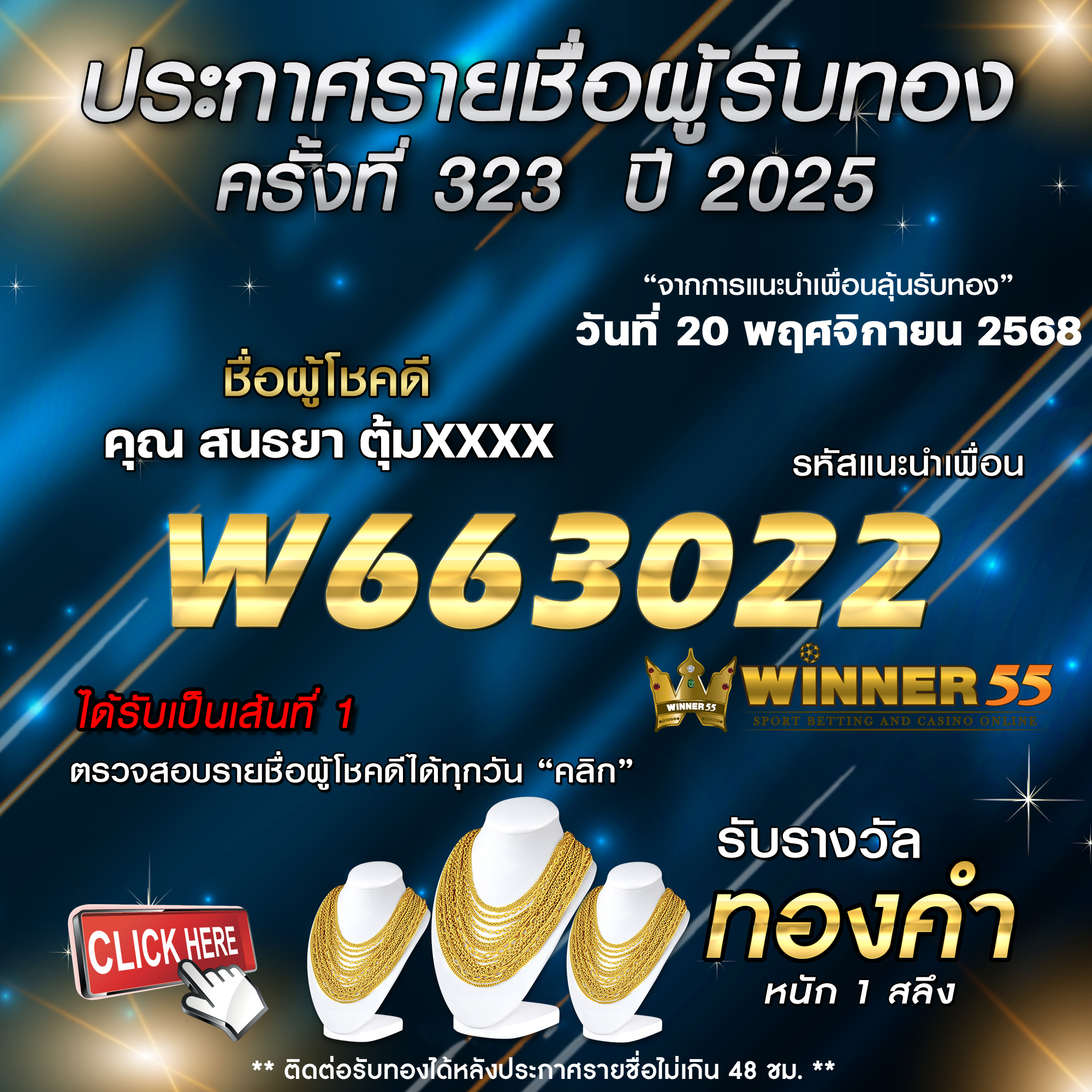 ประกาศรายชื่อผู้โชคดี ฐิตา เพชรxxxx ได้รับทองคำหนัก 1 สลึง ประจำวันที่ 23 พฤศจิกายน 2568